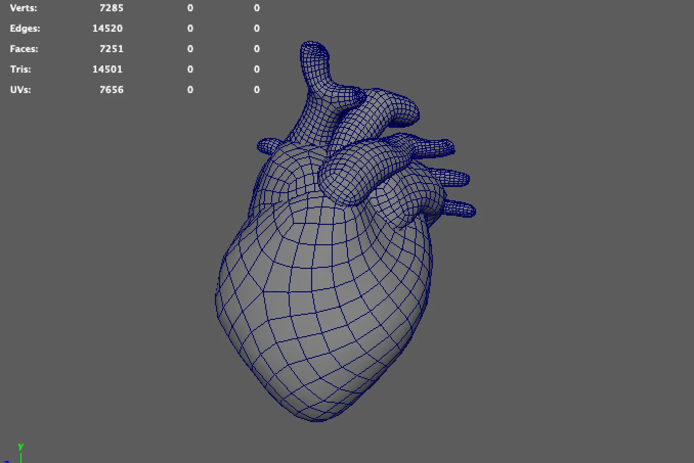 The model of the heart was sculpted and textured in ZBrush. Texture and Normal maps were exported from ZBrush into Maya.
